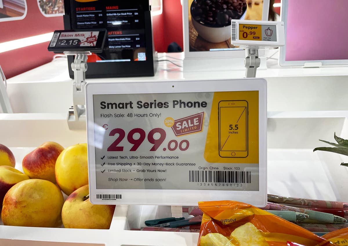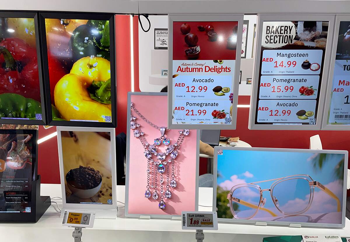 بالإضافة إلى ذلك، كشفت Datallen عن أحدث ملصقات الرف الإلكترونية (ESLs) وعلامات الإعلان الرقمية LCD الخاصة بها. تمكّن سلسلة ESL—التي تشمل الأنماط الأربعة الألوان، المقاومة للماء، والمناسبة للمخازن الفريدة—من تحديث الأسعار في الوقت الفعلي وتكامل سلس مع أنظمة ERP.
