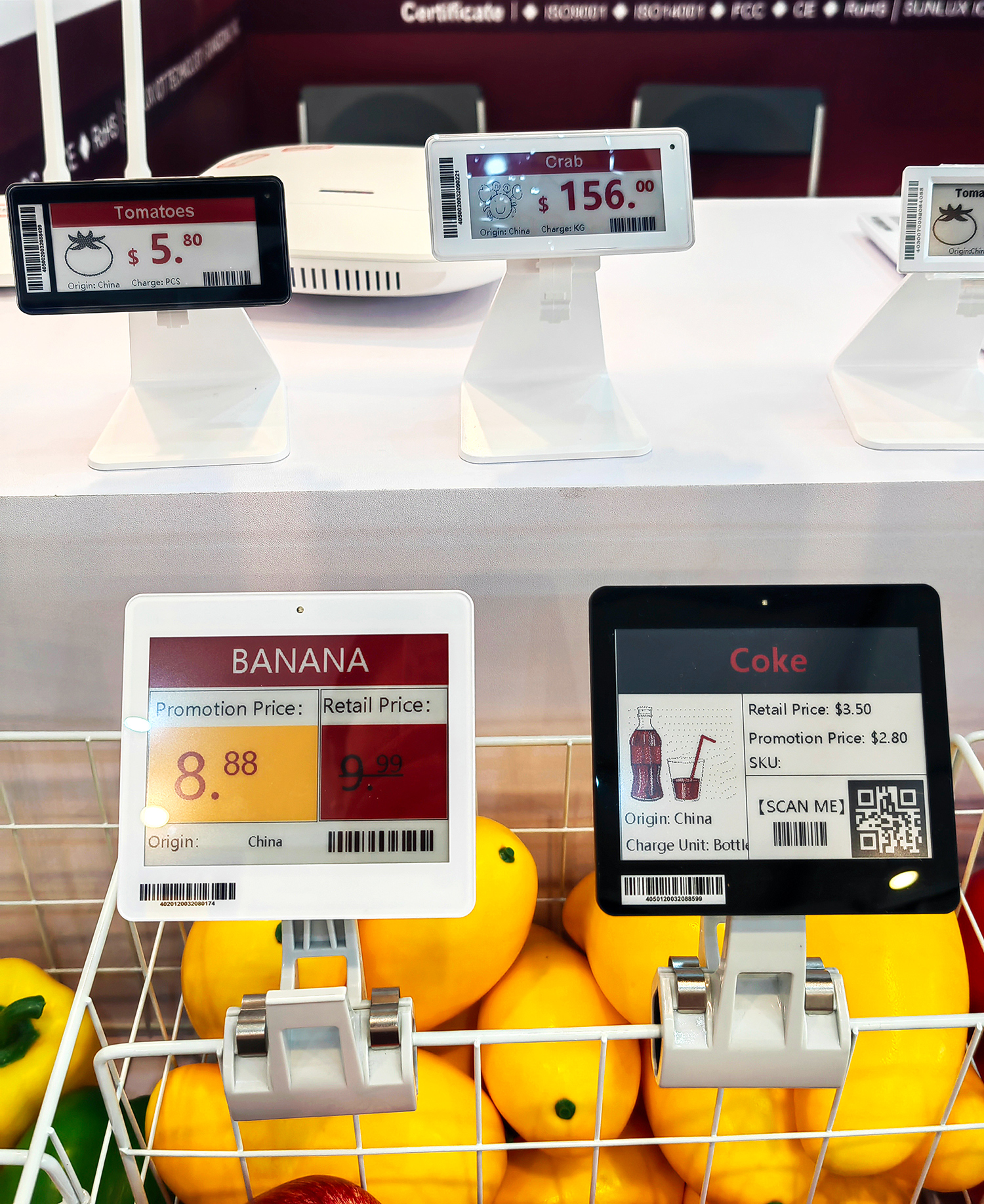 تمتلك خصائص دقة عالية، وملونة بالكامل، وتباين عالٍ، وتدعم أشكال مختلفة لعرض المحتوى مثل الفيديوهات، والصور، والأسعار، وما إلى ذلك. بفضل نظام إدارة خلفي قوي، يمكن للمستخدمين إنشاء ملصقات أو فيديوهات جميلة ببساطة عن طريق إدخال المعلومات، مما يساعد على تحقيق إدارة متجر ذكية.